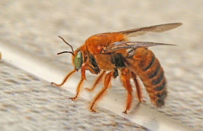 Orchidee-bij, mogelijk (Eulaema sp.) Brokopondo stuwmeer Suriname 1-5-2019. / 17-19 mm