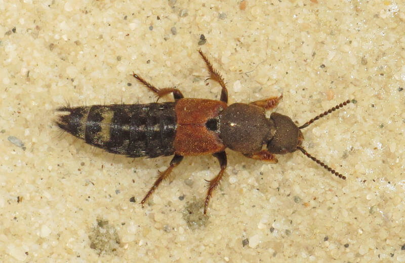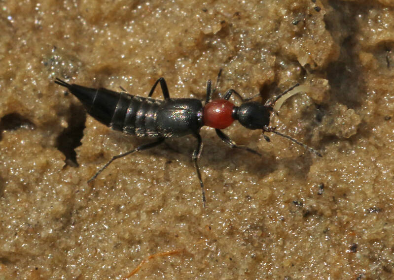 Gewone oeverkortschildkever (Paederus riparius) Bargerveen Klazinaveen 27-4-2021. / 7,5-8 mm