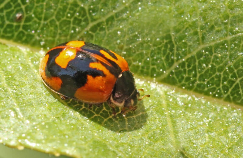 Veelkleurig Aziatisch Lieveheersbeestje (Harmonia axyridis) parkje a/d geul Wijk bij Duurstede 20-6-2024. / 2c
