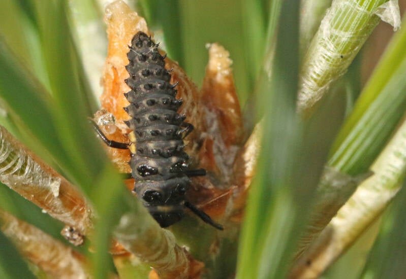 Larve Oogvleklieveheersbeestje, (Anatis ocellata) Utrechtse baan Leersum 19-6-2024.