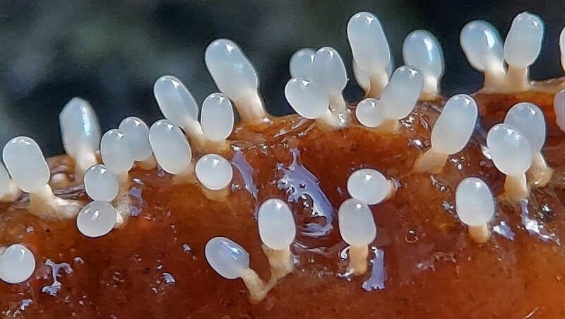 Wit gaffelhaarbuisje (Henningsomyces candidus) Kaapse bossen Doorn 20-11-2020. 2