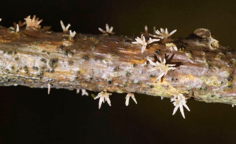 Lariksviltkelkje (Lachnellula occidentalis) Kaapse bossen Doorn 5-12-2025. Z 65
