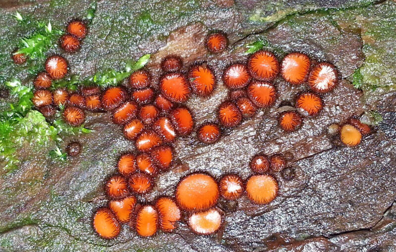 Pukkelsporige wimperzwam, (Scutellinia patagonica) landgoed Soelen, Zoelen 31-7-2016. ZZZ 48