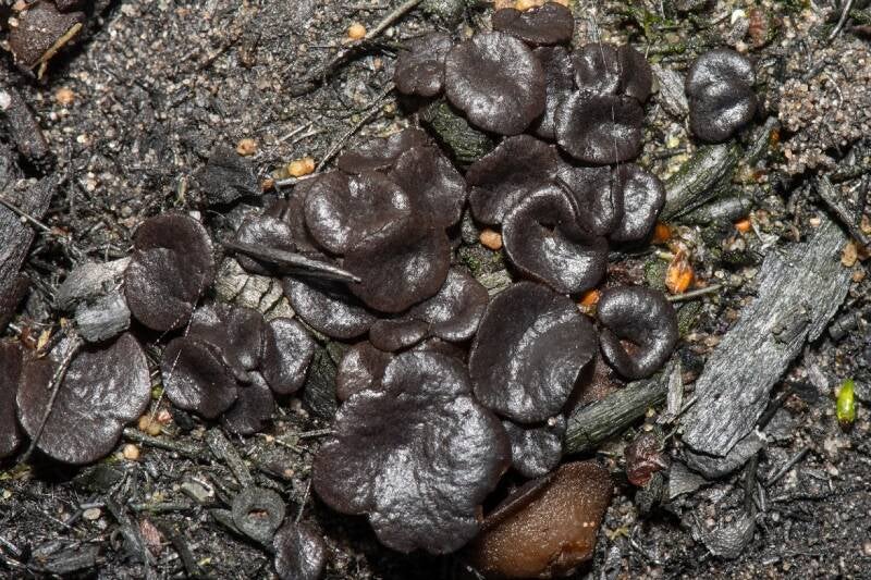 Zwart-witte mollisia (Mollisia melaleuca) Kaapse bossen Doorn 1-3-2018. Z 49