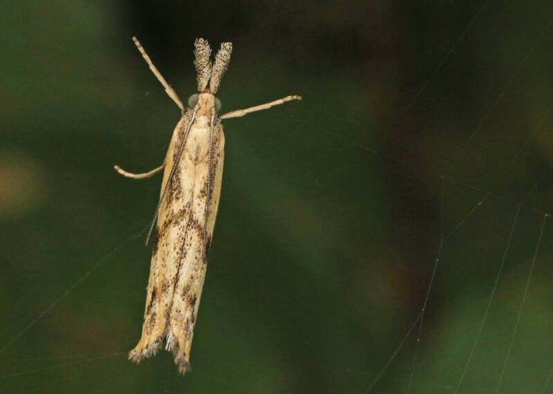 Vogelkersstippelmot (Yponomeuta evonymella) Hoornaar 26-6-2023. / 16-25 mm