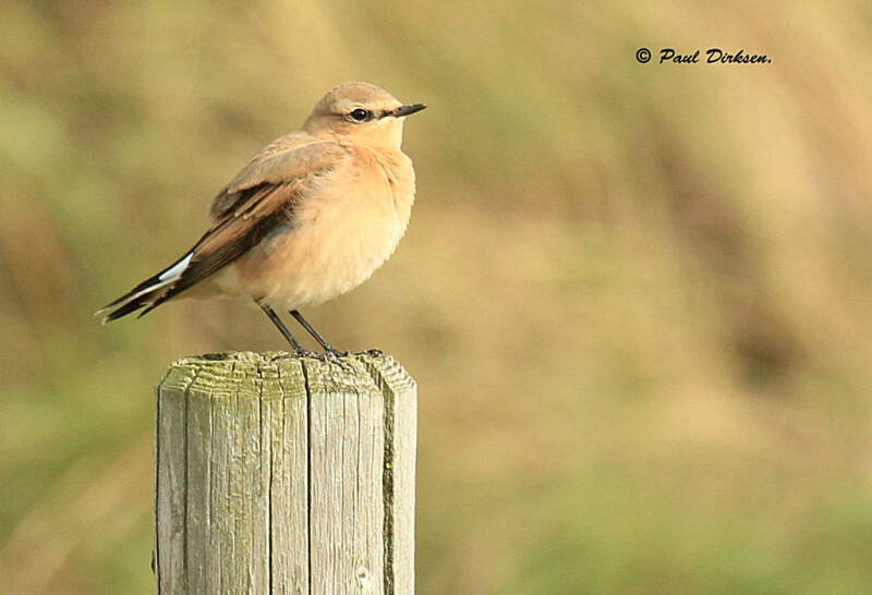 Tapuit (vr.) (Oenanthe oenanthe). parkeerplaats IJmuiden zuidpier. 11-10-2014 15