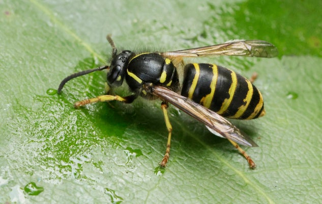 Duitse wesp (Vespula germanica) achtertuin Wijk bij Duurstede 12-9-2021. / 12-15 mm