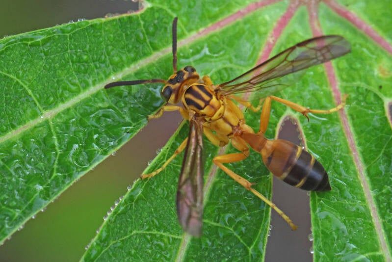 Langsteelgraafwesp (Polistes versicolor) Nieuwzorg distr. Commewijne Suriname 28-9-2022. /
