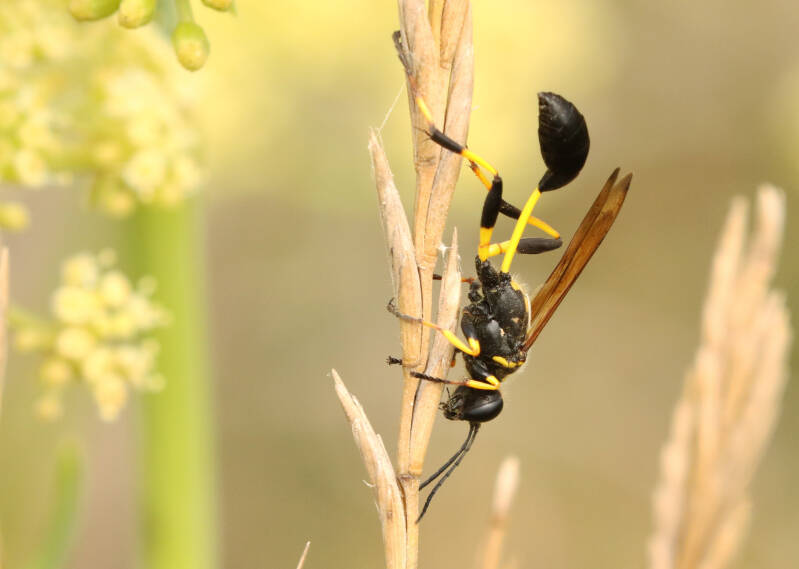 Langsteelgraafwesp, (Eremnophila aureonotata) Nieuwzorg distr. Commewijne Suriname 19-9-2022. /